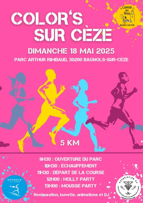 course à pied non chronométré de 5km avec une arche tout les kilomètre où il vous sera jeté de la poudre de couleur inoffensive pour la peau