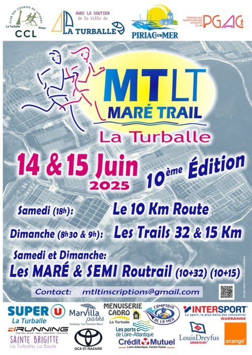 Combinaison des 2 courses: Samedi 14 juin: Les Foulées Turballaises - 10km Dimanche 15 juin: Trail - 32km ou 15 km