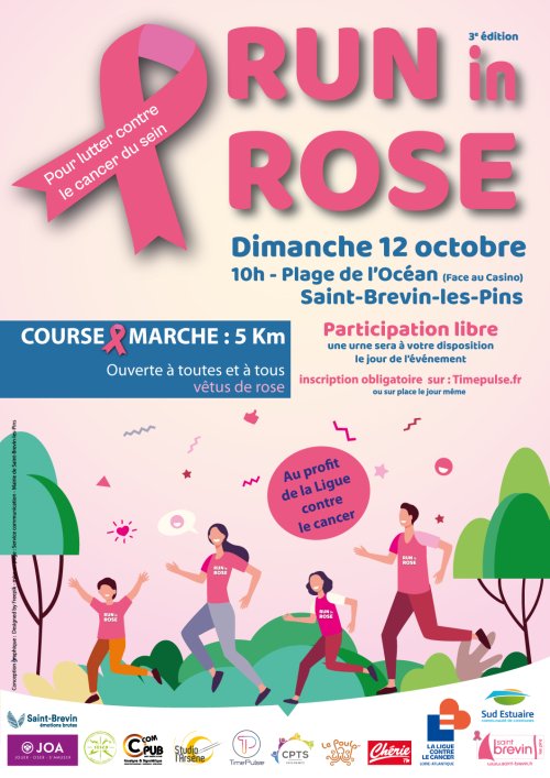 RUN IN ROSE est une manifestation caritative coorganisée par le Casino JOA et la Ville de Saint-Brevin-les-Pins en partenariat avec la Ligue contre le cancer de Loire-Atlantique et l’Office de tourisme Sud Estuaire.