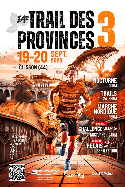 La Section Etoile de Clisson Athlétisme du Racing Club Nantais a le privilège de vous accueillir le samedi 20 septembre 2025 sur le site du Hellfest pour participer à la 14ème édition du Trail des 3 Provinces.