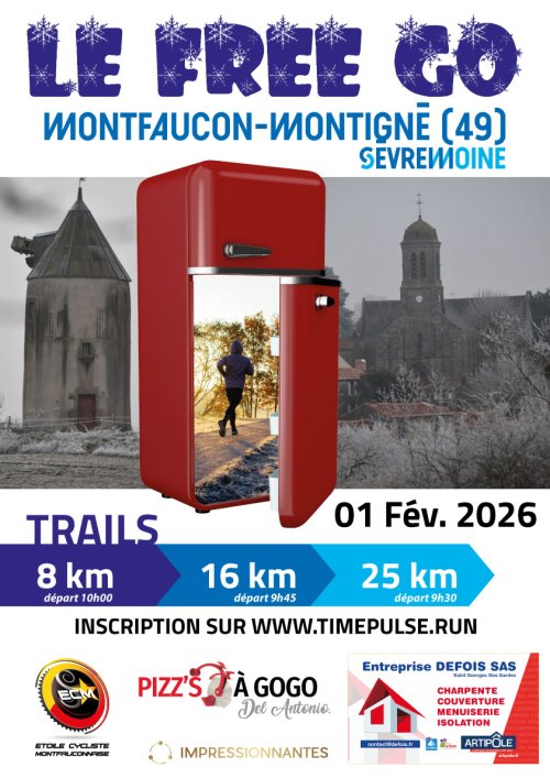Adresse de l’organisation : Trail « le Free GO »11, rue des Mésanges, Montigné, Montigné sur Moine 49230 SEVREMOINE : ecmontfaucon@gmail.com