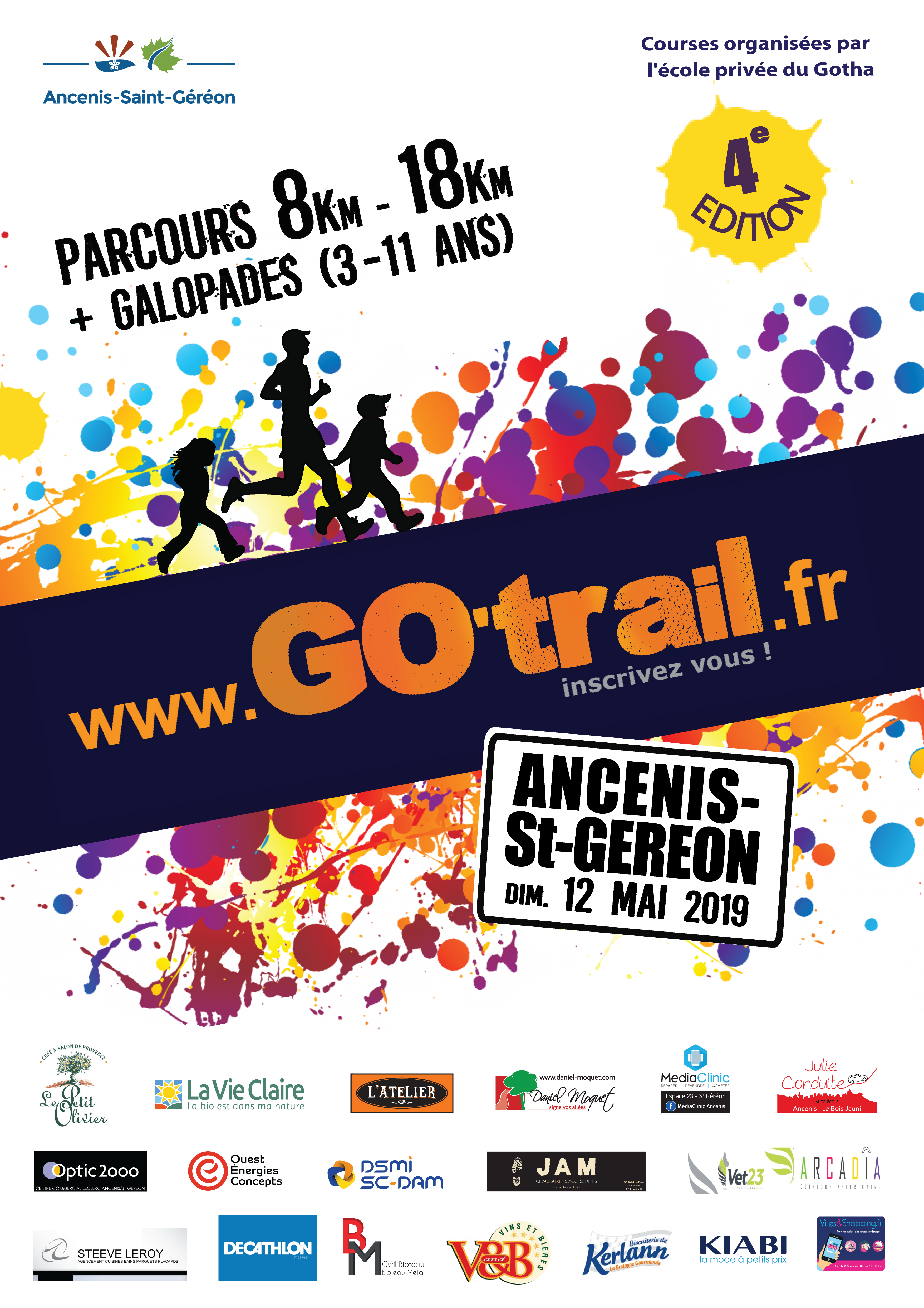 L'Association des Parents d’Elèves de l’école privée du Gotha de Saint-Géréon organise un Trail off « GO’TRAIL » le dimanche 12 mai 2019. La manifestation ne donnera lieu à aucun classement lié à la vitesse ou au temps.