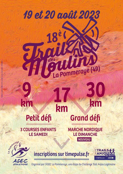 Retrait des dossards au stade de La Pommeraye : dimanche entre 6h30 et 7h45, sur présentation d'une carte d'identité Parcours : 30 km, dénivelé 1000m D+ Ravitaillement : cf règlement Lots pour tous, récompenses aux 3 premiers hommes/femmes du scratch