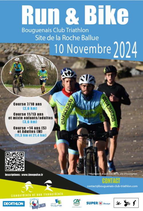 Le Bouguenais Club Triathlon (BCT) organise, le 10 Novembre 2024, la troisième édition de son run and bike sur le site de la Roche Ballue.