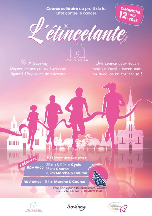 Après une édition 2024 marquée par un bel engouement et plus de 2000 participants, L’Etincelante revient le dimanche 12 octobre 2025 pour une nouvelle édition Rose et solidaire.