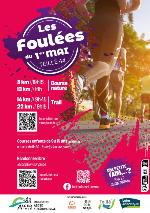 - Marche à partir de 8h00 (inscriptions sur place ou sur HelloAsso https://www.helloasso.com/associations/asced-athletisme/evenements/randonnee-les-foulees-du-1er-mai)
