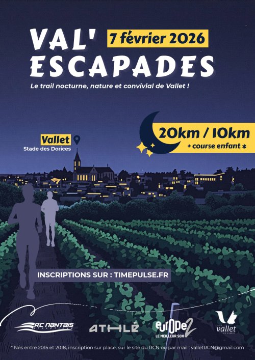 Les Val'Escapades sont organisées par le RACING CLUB NANTAIS-Section de VALLET, avec l'accord de la commune de VALLET.
