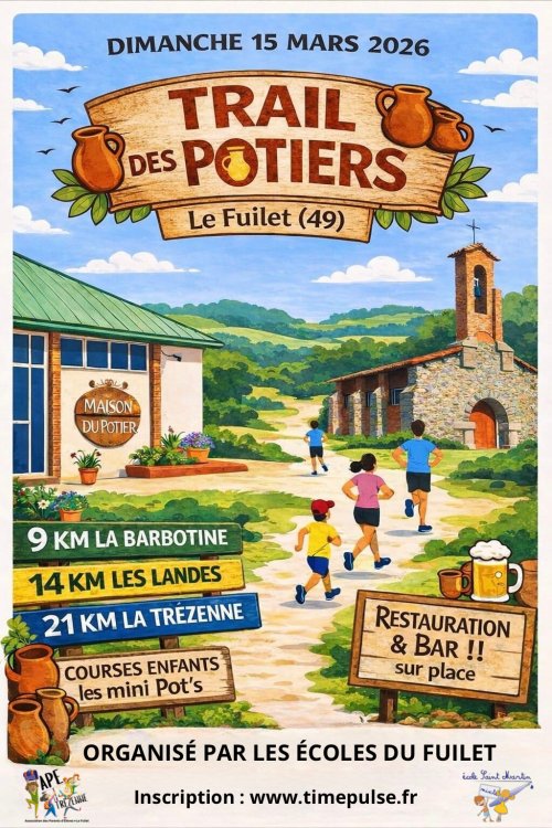 Les deux écoles du Fuilet (St Martin et La Trézenne) organisent un Trail off « TRAIL DES POTIERS » le dimanche 15 Mars 2026.